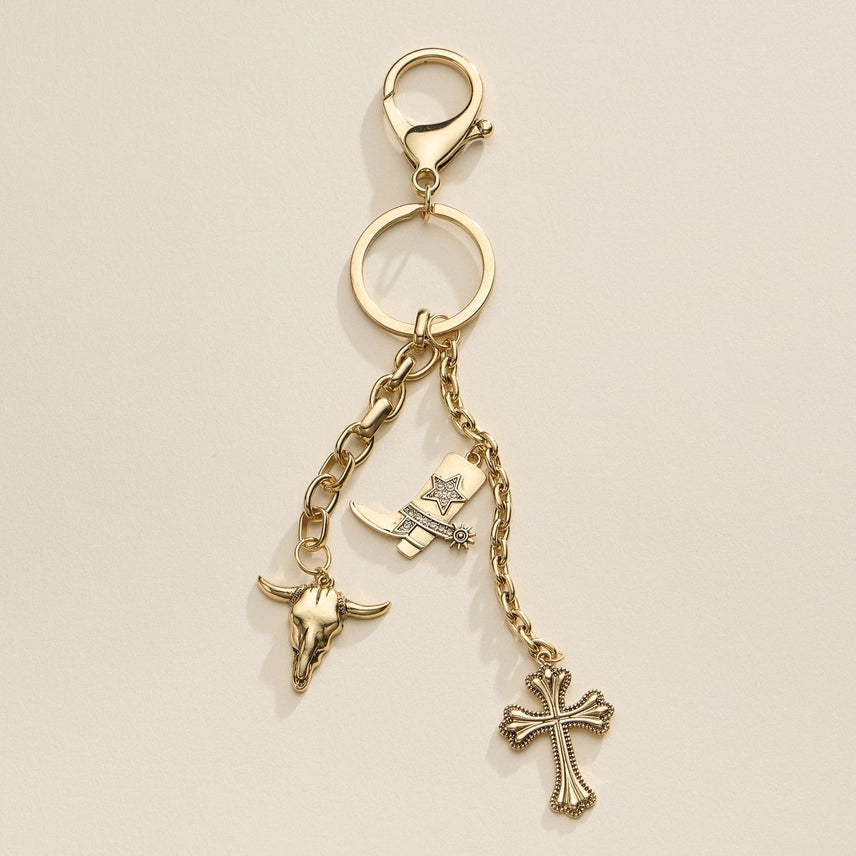 Western Bag Charm Keychain with Boot, Skull, and Cross